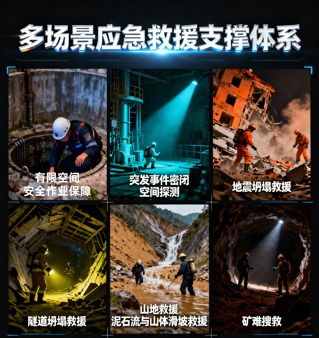 應(yīng)急救援:地震/坍塌廢墟定位、礦山/火災(zāi)人員排查,為消防、地震救援部門提供關(guān)鍵支撐。